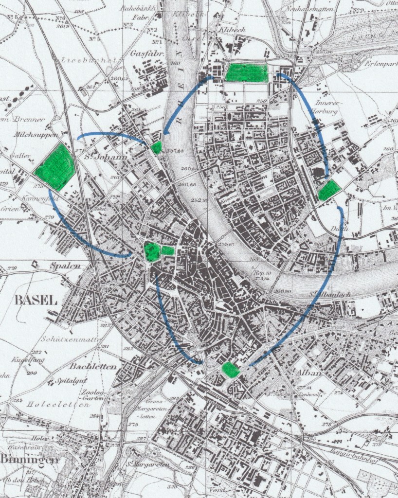 Freiräume sind in Basel zu einem wesentlichen Teil durch die Umnutzung von Friedhöfen entstanden. Parallel zum Wachstum der Stadt sind die Toten (und der Tod) zusehends vom Zentrum in die Peripherie verdrängt worden. Dieser Entwicklung spüren wir mit einer Rundreise nach, bei der wir die ehemaligen Gottesäcker ausserhalb der Stadtmauer zu Fuss erkunden. Mit einem urbanen «Island Hopping» schaffen wir so ein peripatetisches Design – eine neue, temporäre «Umfriedung» um die Stadt.